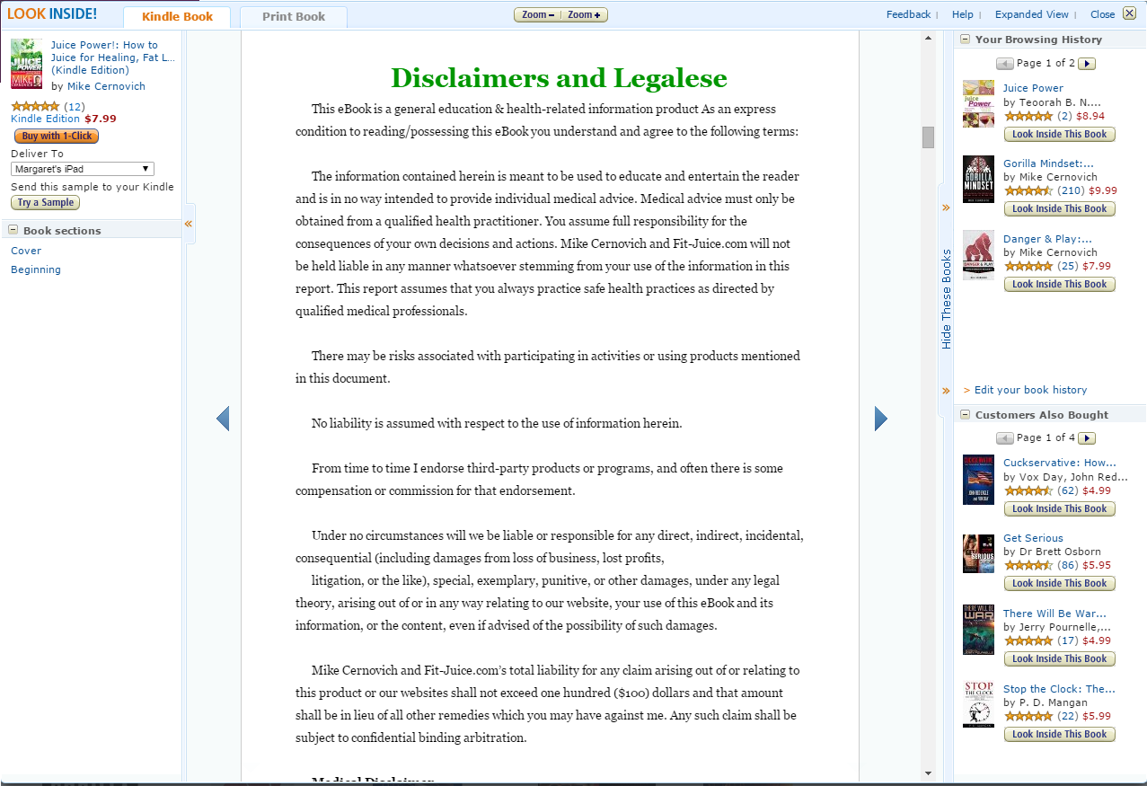 Even his diet books are a sham: Cernovich admits on page 1 of “Juice Power!: How to Juice for Healing, Fat Loss, and Lifelong Nutrition” that he juices veg because he dislikes eating them whole, then follows with a lengthy disclaimer indemnifying his recipes.